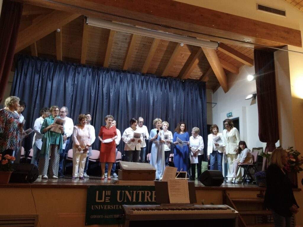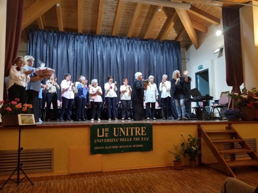 Domenica 25 maggio giornata conclusiva del festival dei cori 2025; sul palcoscenico del teatro civico di Retorbido hanno animato il concerto pomeridiano i cori UNITRE di CASTEGGIO e il coro della nostra UNITRE, “le voci del Rile”. Il maestro Franzin che dirigeva la compagine casteggiana ha ripercorso attraverso i colori alcuni momenti storici della musica leggera e popolare italiana mentre la triade Mutti – Carrer e Buzzi ha ricostruito col giovane coro della nostra sede niente di meno che la storia della musica, a partire dai suoi albori, nella antica Grecia. Il risultato ? Uno spettacolo articolato e vario che ha saputo catturare l’attenzione, gli applausi e la partecipazione del folto pubblico intervenuto, che ha fatto registrare un “tutto esaurito “di cui andare davvero orgogliosi. Presente il Sindaco ospitante, Enrico Frattini, il Presidente della biblioteca di Rivanazzano Terme, Marco Bertelegni, e la presidente della biblioteca di Godiasco- Salice Terme, Elisabeth Nosotti, il concerto si è concluso con la premiazione del coro di Casteggio, che ha ricevuto per mezzo del Presidente Giorgio Giorgi la targa -ricordo, e del nostro coro, rappresentato dalle tre maestre.
